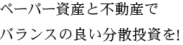 外貨預金や投資信託など、これらの時代の新しい資産運用のための金融商品が次々に登場しています。しかし、その多くが債権であることはご存知ですか?リスクのバランスを考えた、真の分散投資をお考えの方は、株や債券などのペーパー資産だけでなく、安心感のある不動産資産との分散投資をおすすめします。